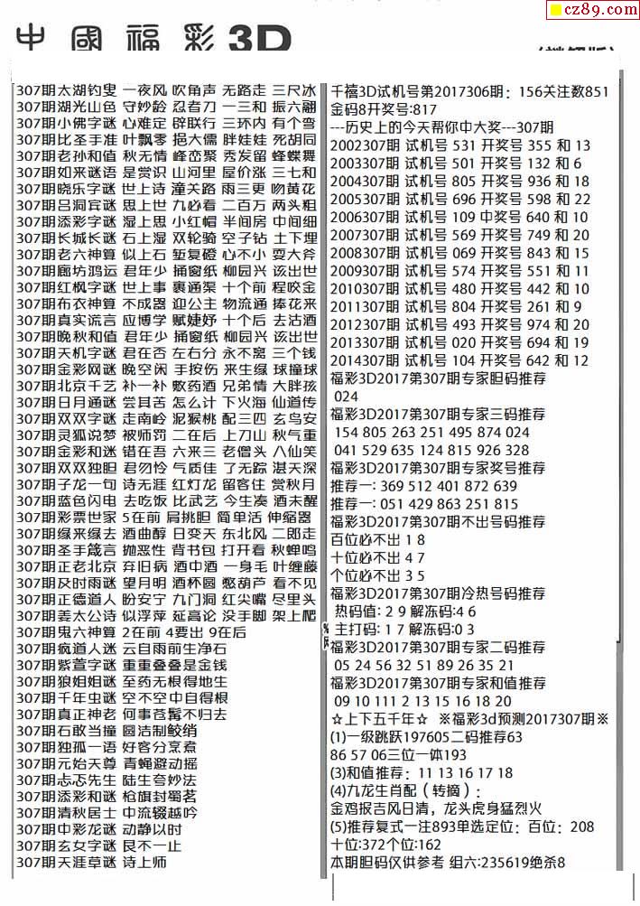 > 杀手+鑫马快报+字迷汇总25年307期3d图谜